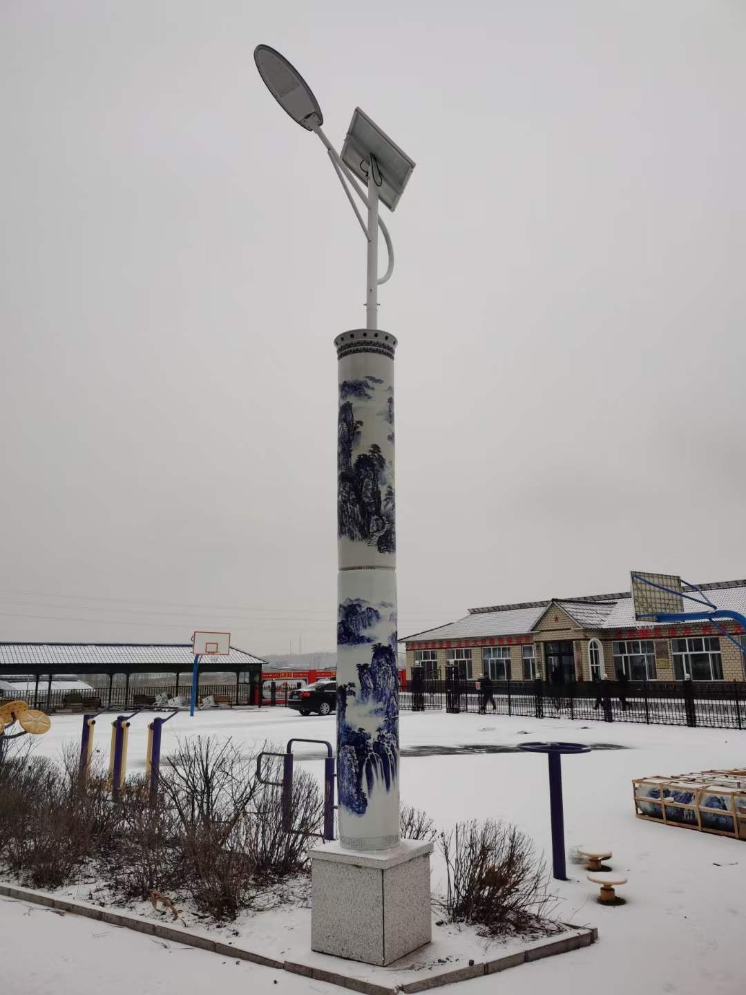 陶瓷燈柱的配置,如下:高1.9米,直徑0.45米,每根兩節(jié),一套兩根,陶瓷燈柱畫(huà)面主要以山水畫(huà)為主,每一節(jié)下面打一個(gè)洞,寫(xiě)景德鎮(zhèn)制,由于顧客不知道怎么安裝,所以派了專(zhuān)業(yè)人員去指導(dǎo)安裝,本次的運(yùn)費(fèi)也我們這邊出的。來(lái)看看產(chǎn)品: