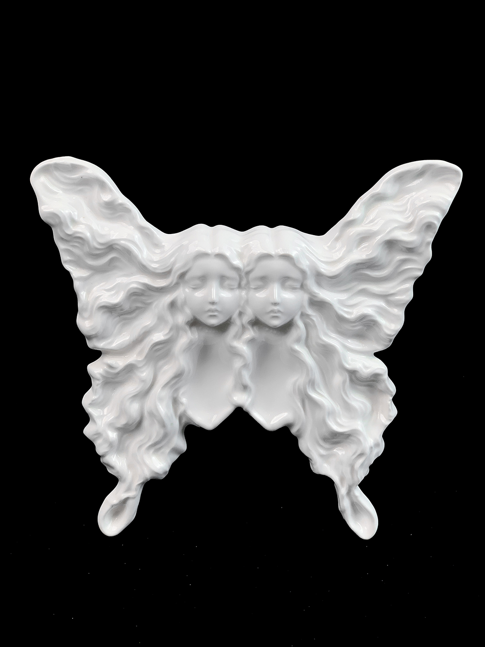 范思哲定制 創(chuàng)意蝴蝶雙生陶瓷擺件