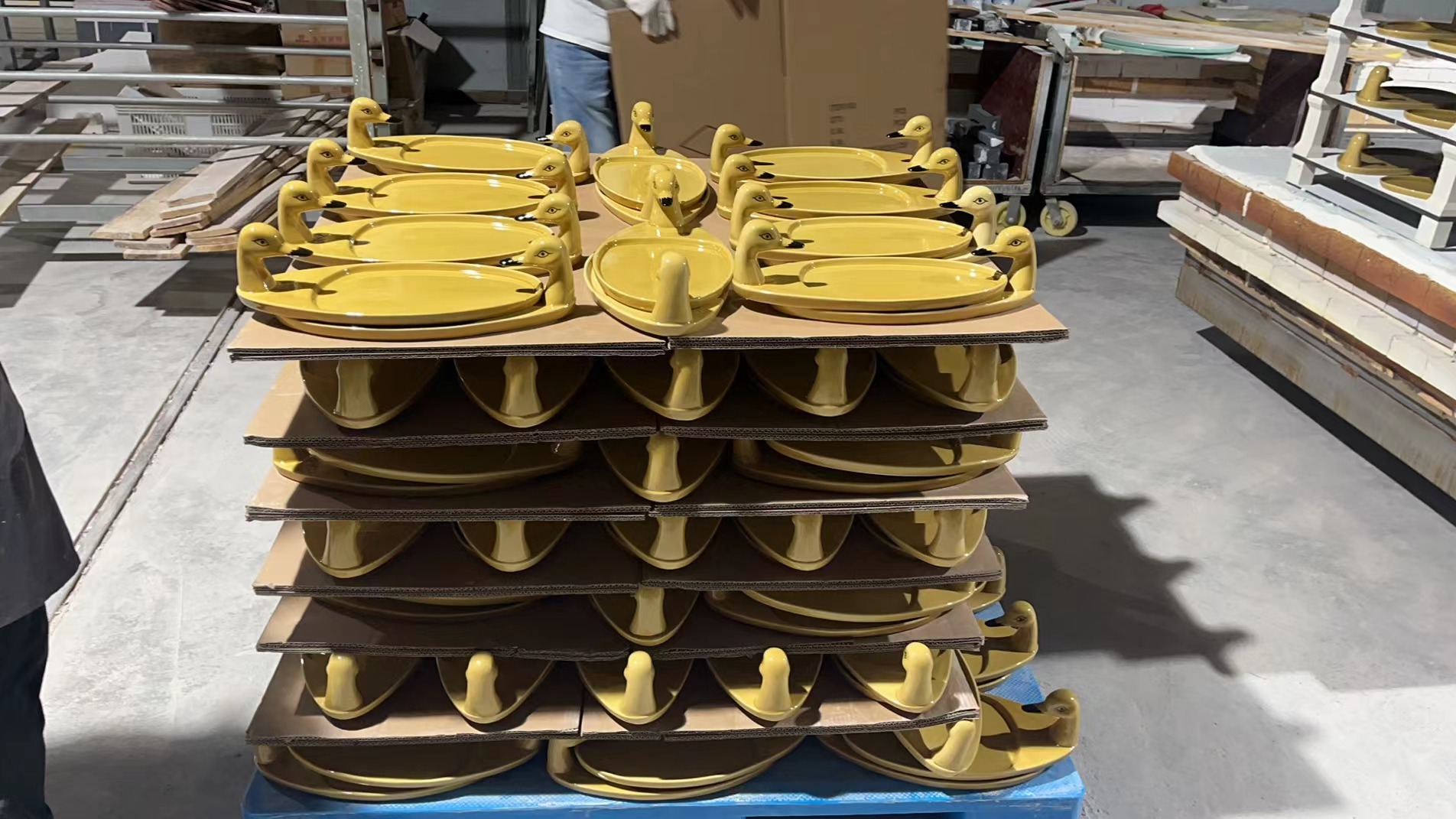 去年北京的客戶找到我們,想要給自家連鎖酒樓定制一批用來裝北京烤鴨的盤子,大概需要五百個(gè)。根據(jù)客戶需求,我們?cè)O(shè)計(jì)制作了三款設(shè)計(jì)圖,最終客戶選擇了這款和烤鴨一樣金色釉面的款式。根據(jù)客戶需求,我們先制作出了樣品,客戶表示非常滿意。產(chǎn)品圖片如下: