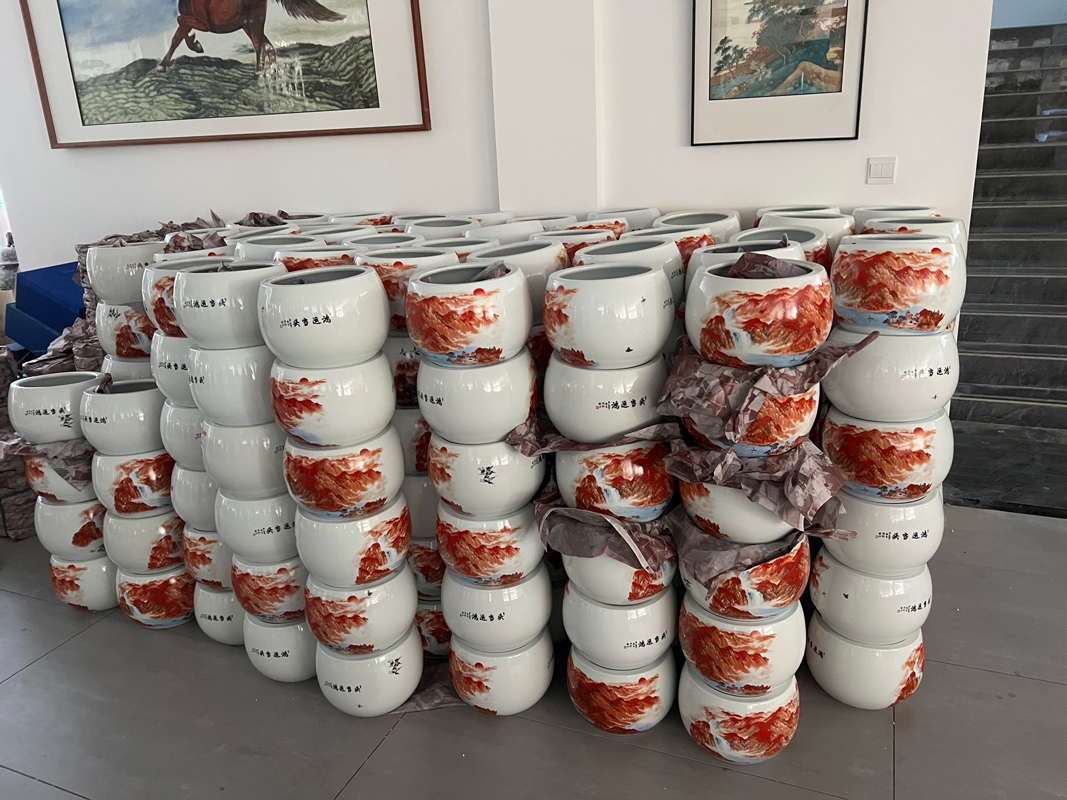 江山多嬌,天高任鳥飛,海闊憑魚躍。這款聚寶盆是我們公司做過的產(chǎn)品,當(dāng)時客戶要求要符合“聚寶”的意境,且要求圖案要大氣不落俗套,于是我們設(shè)計打樣了這款鴻運(yùn)當(dāng)頭,也是紅色山水聚寶盆,客戶當(dāng)時就定下了一批。聚寶盆尺寸不大不小,剛好適合放在辦公室,亦或者是家中的玄關(guān)影壁,再養(yǎng)兩條魚,紅色鮮艷,抓人眼球的同時更添喜慶氣質(zhì),人旺了,財自然旺盛,這樣一瞧,可不就是聚財聚寶嘛~