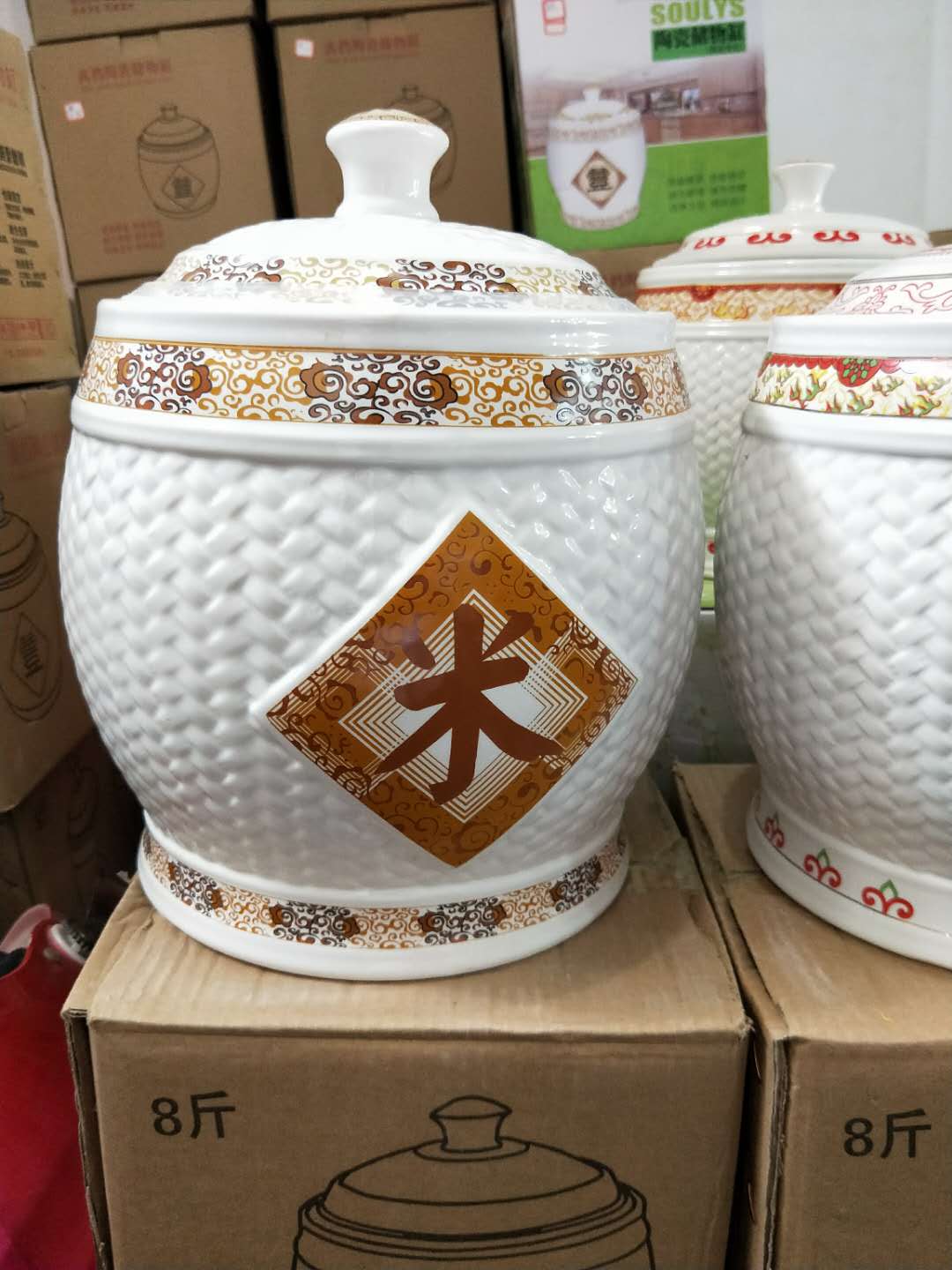 陶瓷米缸,盛放大米的容器。常見(jiàn)為5-20斤左右,因?yàn)槟蛢?chǔ)存而慢慢被大眾熟知。